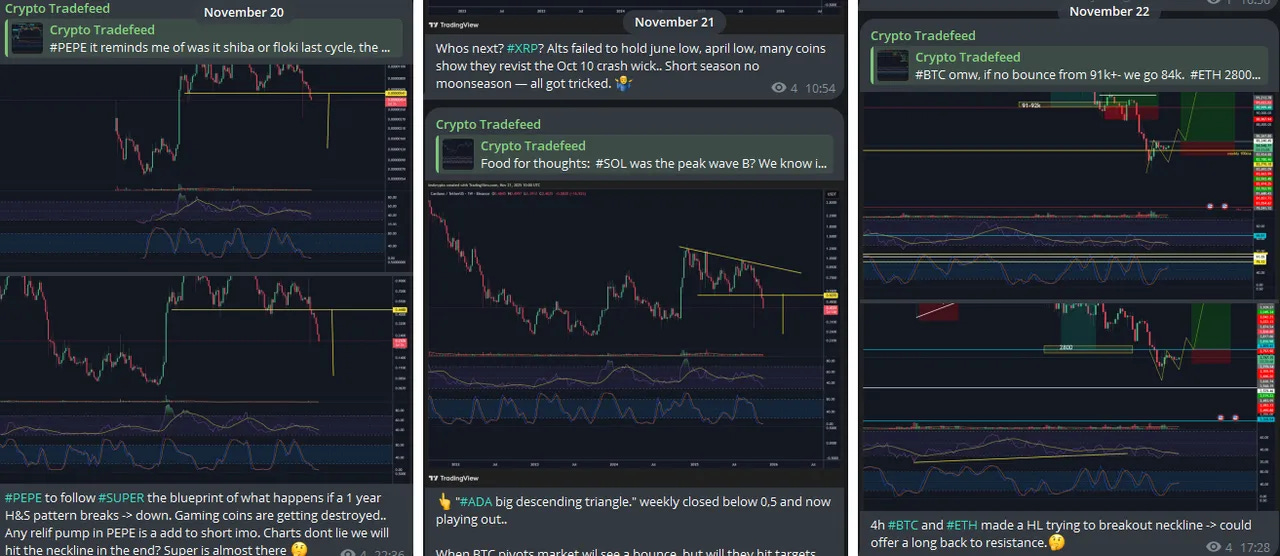 It documents setups — it does not instruct trades.